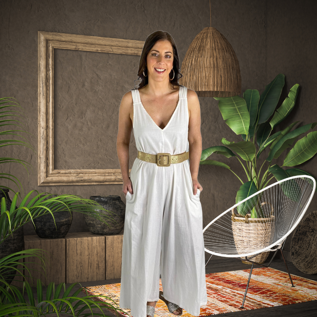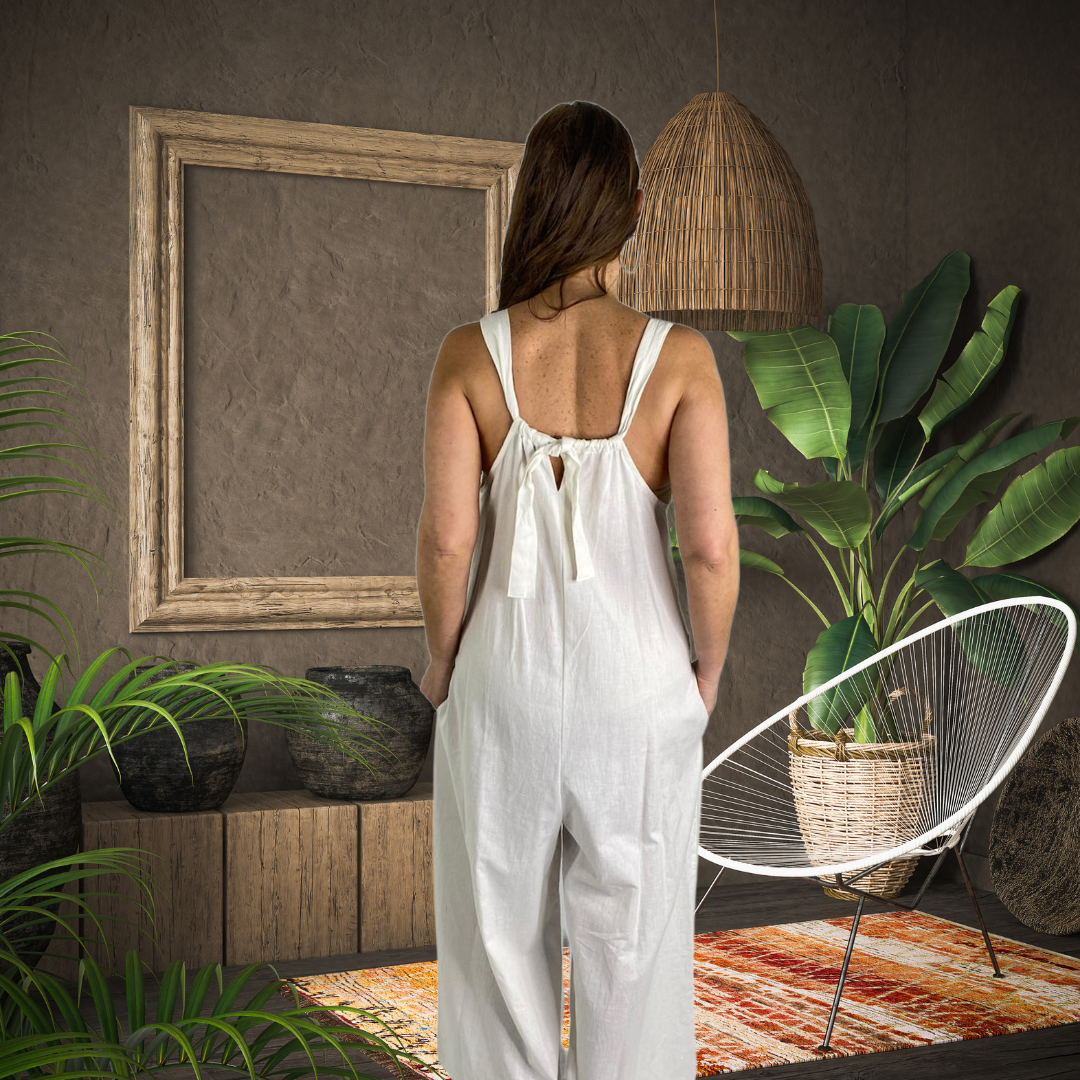 An exclusive YADY Jumpsuit. Keep your look sleek and stylish with a jumpsuit that stuns from day to night! The model wears SM. Cotton-Linen Fabric.