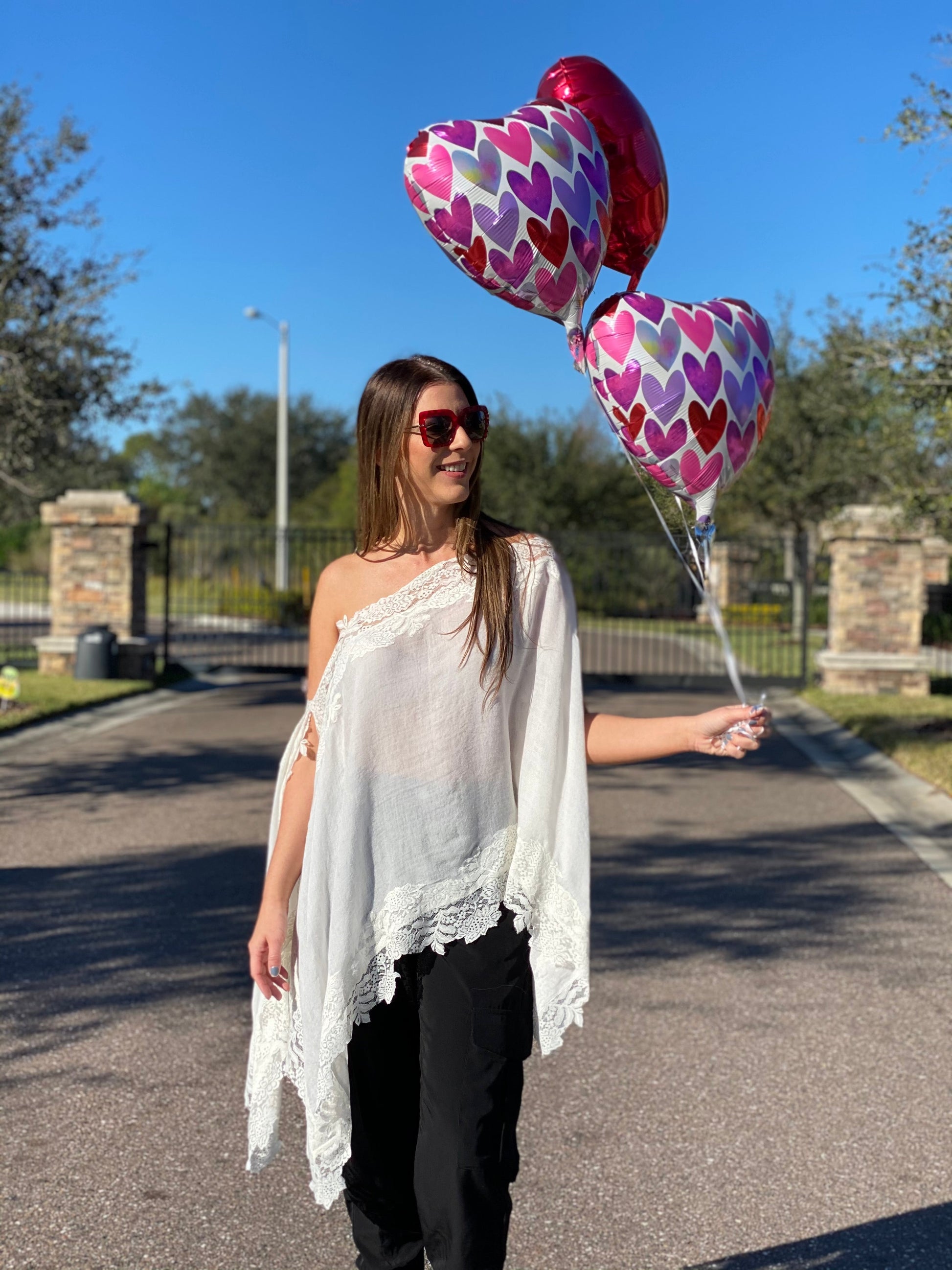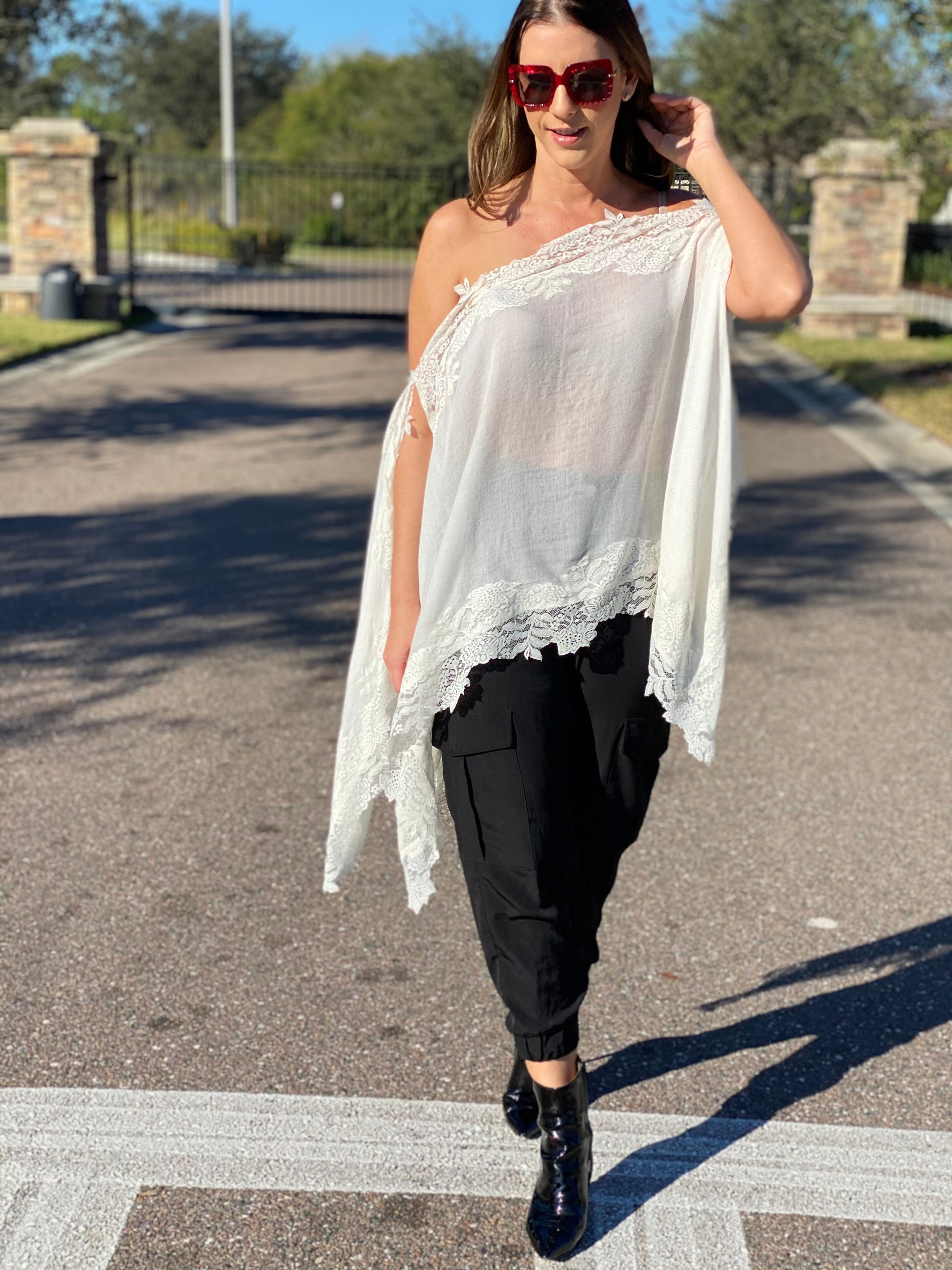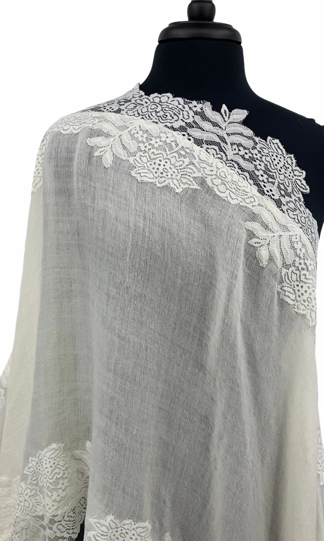 This poncho is an exclusive Yady design, embrace your elegancy with this unique piece. The cashmere fabric blend is the base for the pattern in Australian lace. This poncho is offered in one size. You can wear three different ways.