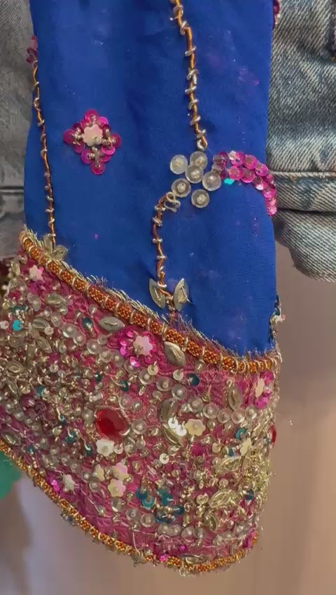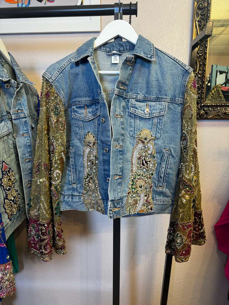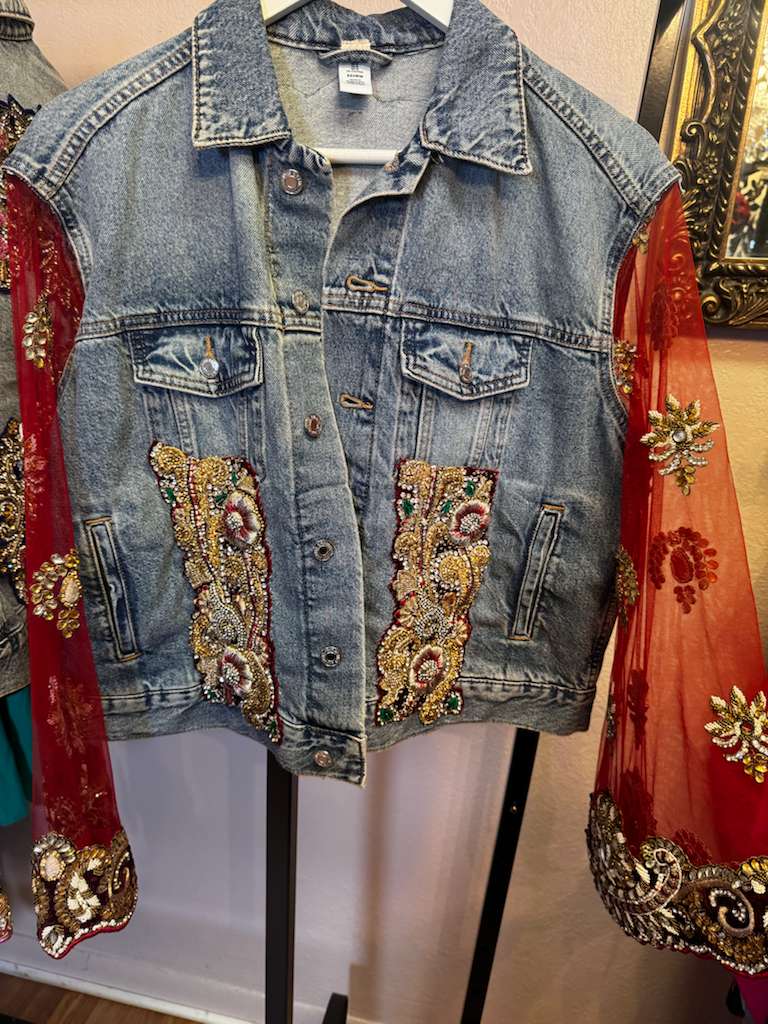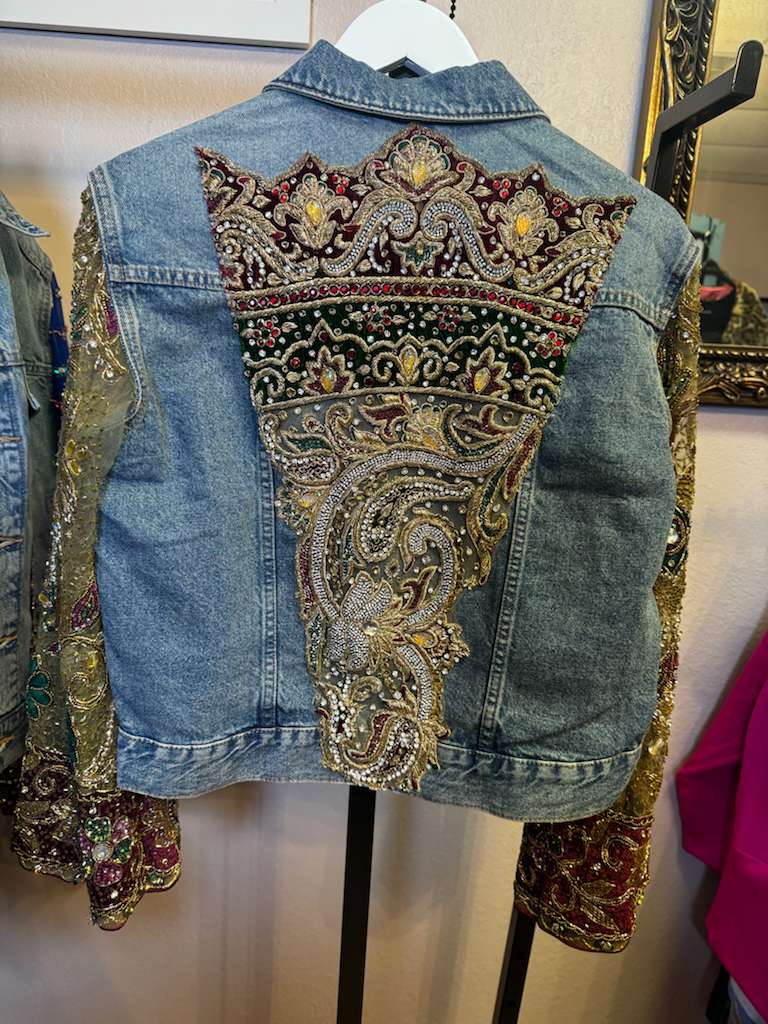 The Jacket Luxury YADY transcends traditional denim with its exquisite fusion of authentic Indian sari patches and sleeves, handpicked by designer Yady. Each jacket showcases intricate embroidery paired with sparkling rhinestones, ensuring every piece is truly one-of-a-kind. This collectible garment elevates your wardrobe with unmatched craftsmanship and cultural artistry, perfect for those who value unique, statement-making fashion.