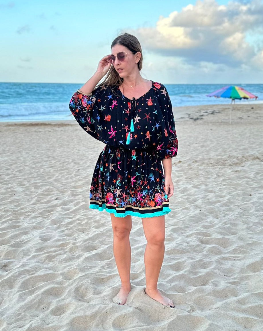 An exclusive YADY print. Made of a very soft and durable material with a loose style that will fit great. This is a versatile piece that you can wear for day or night with just a change of accessories and shoes.